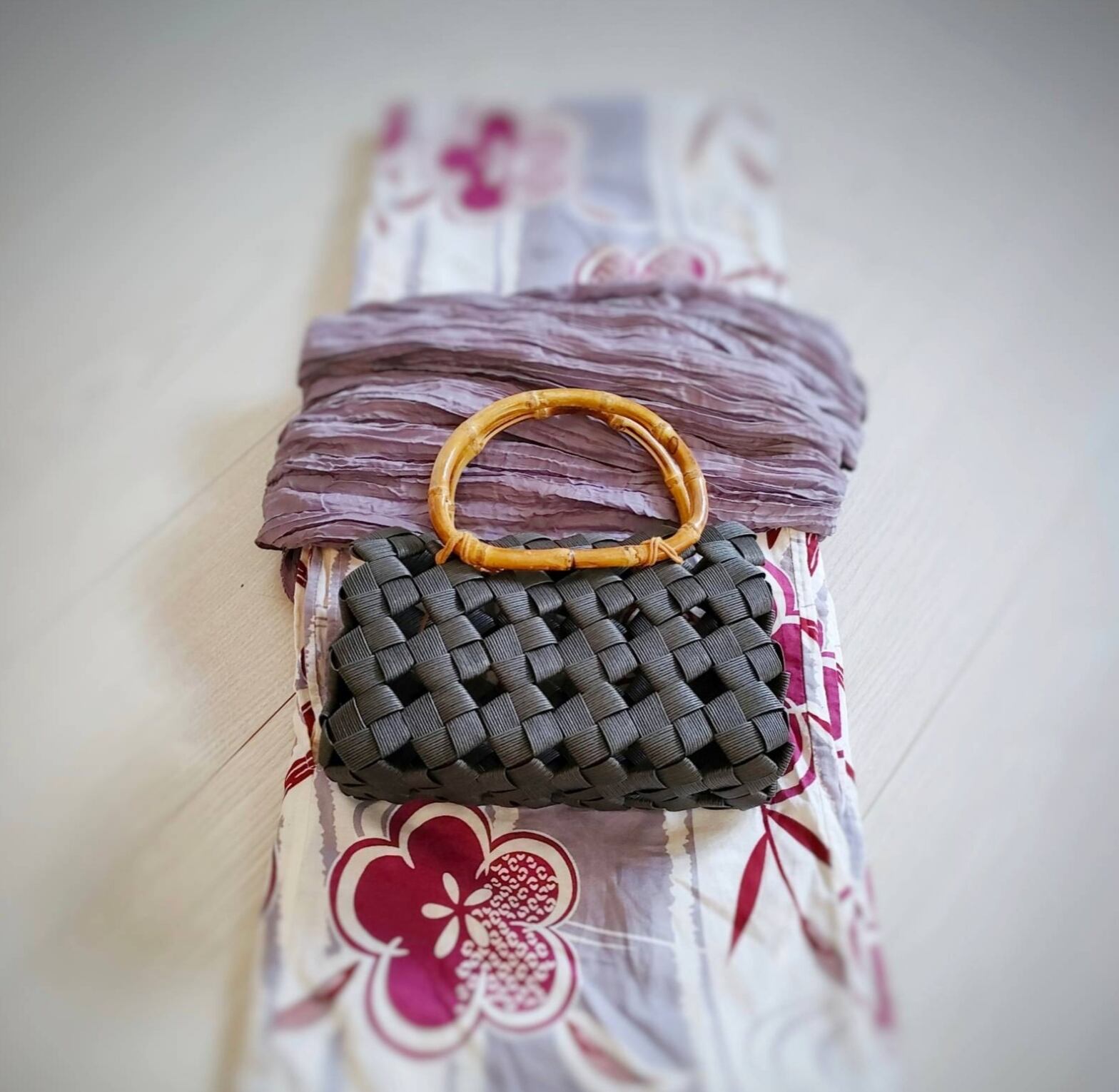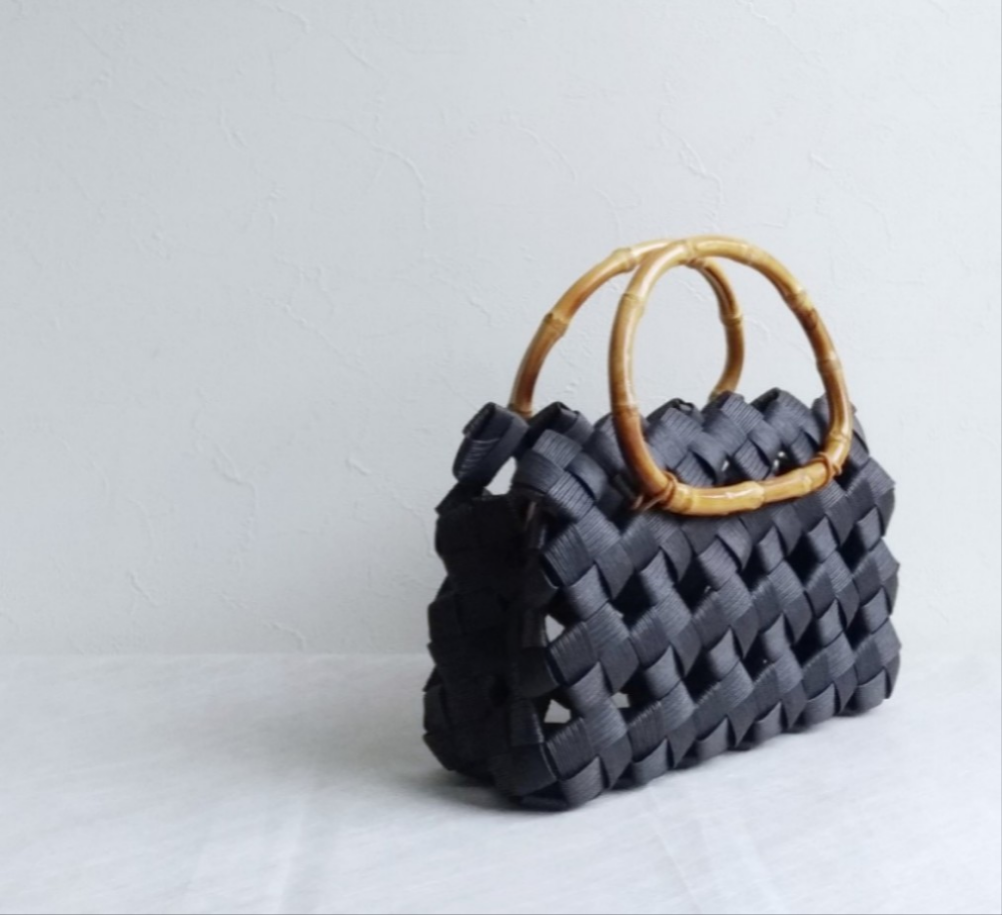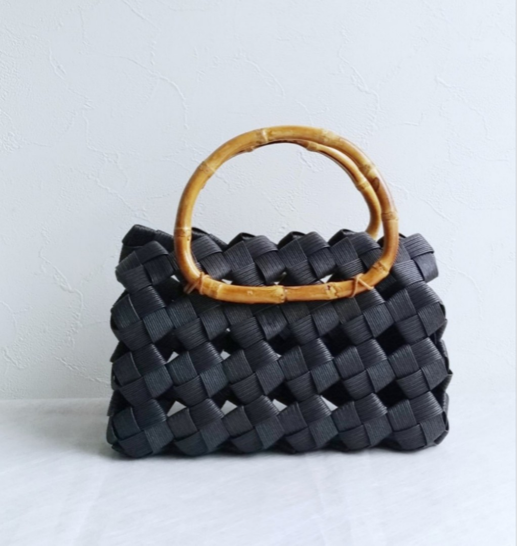 【全9色】夏 涼やか 大人カゴバッグ S 黒 black 竹ハンドル 浴衣にも素敵なかばん