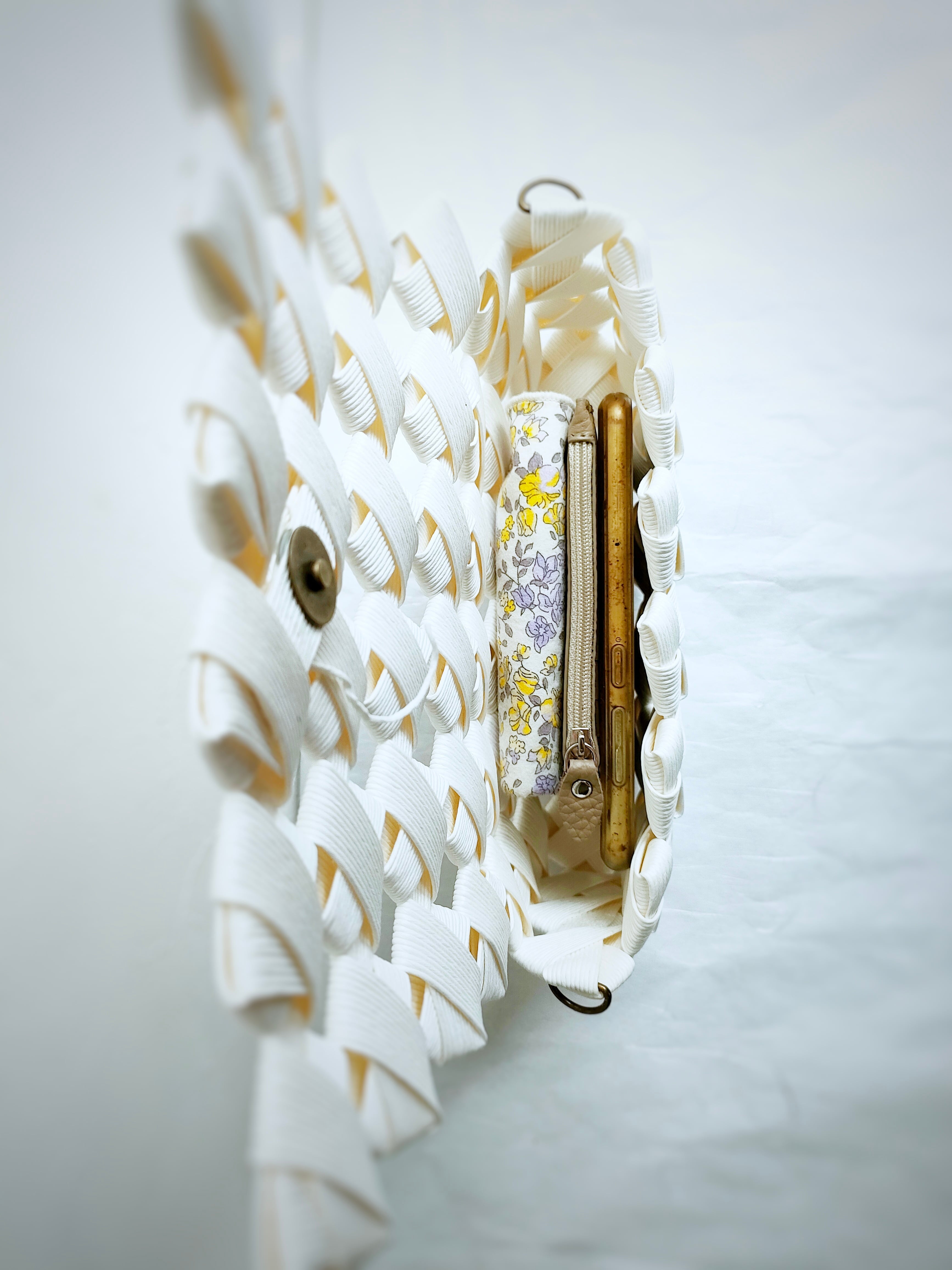 日本製のクラフトテープをひと目づつ丁寧に手編みすることで、紙でできているとは思えないほど丈夫で軽いかばんが誕生しました