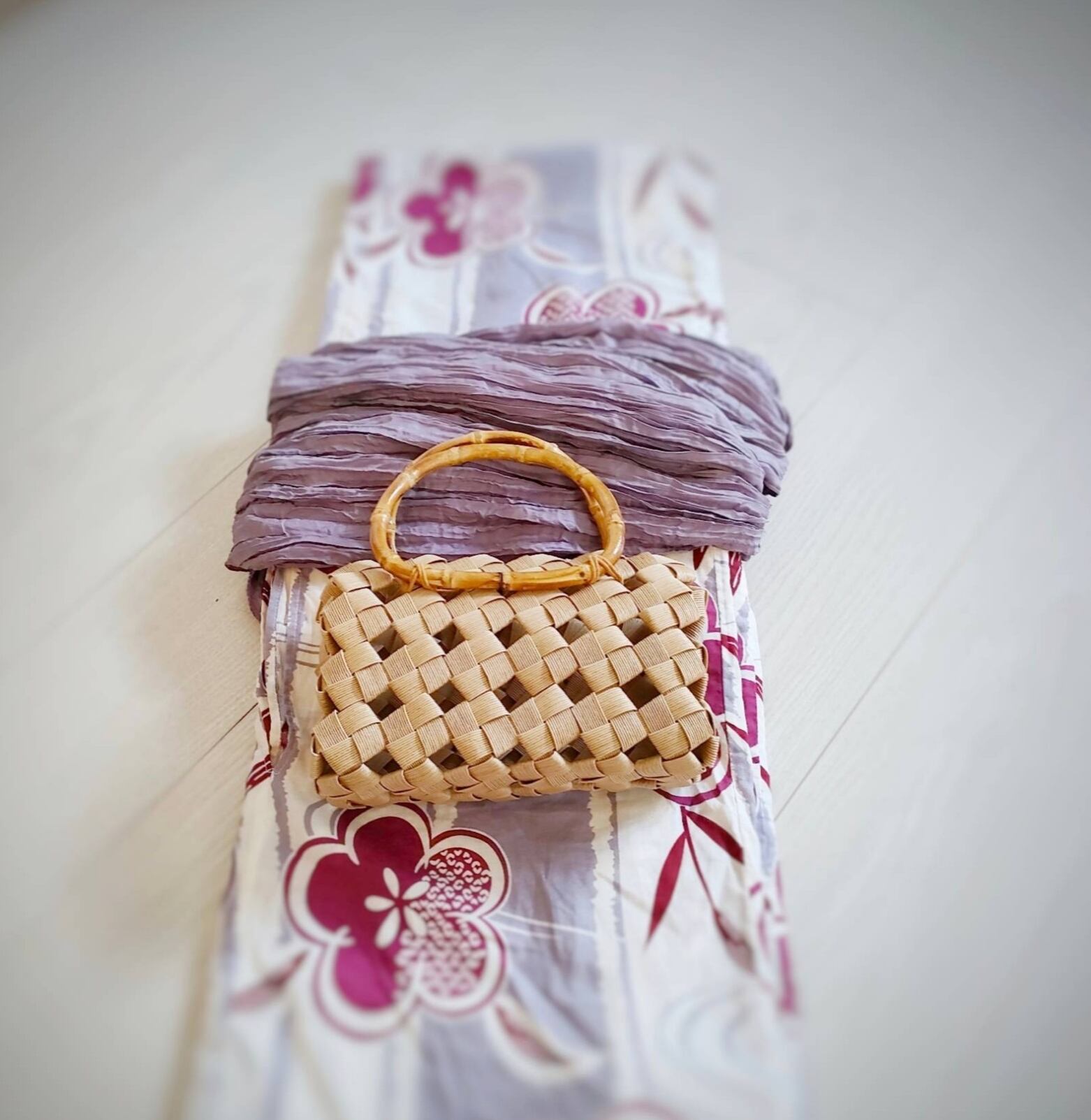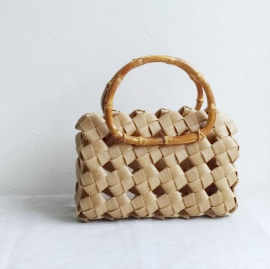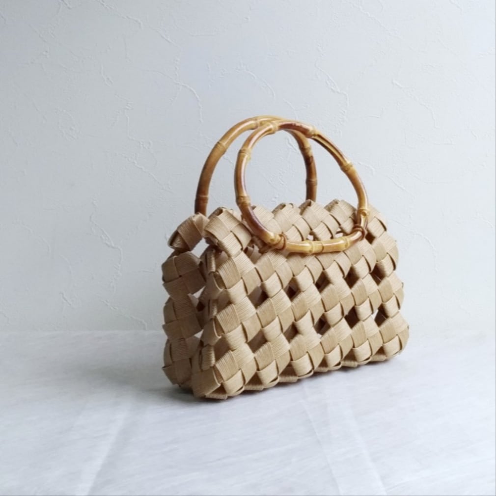 【全9色】夏 涼やか 大人カゴバッグ S きなり beige 竹ハンドル 浴衣にも素敵なかばん