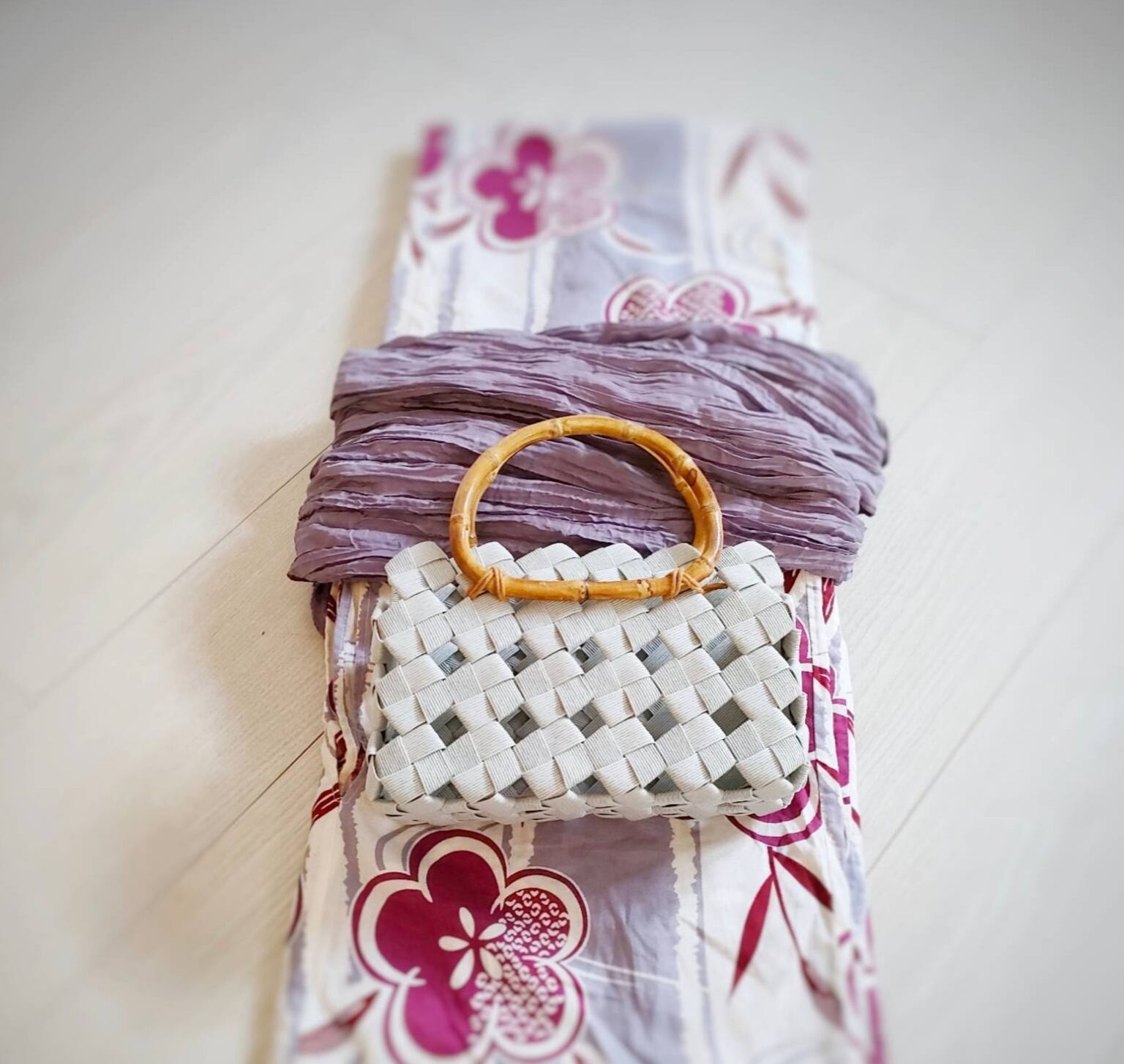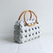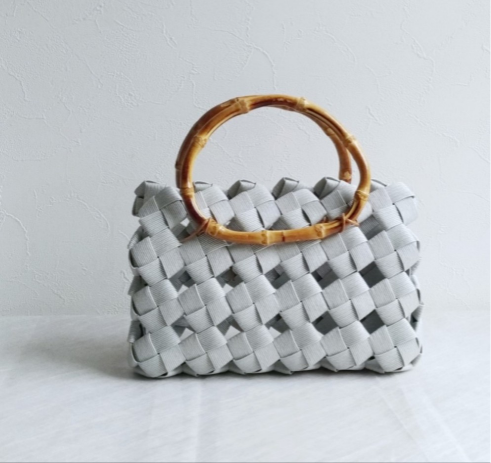 【全9色】夏 涼やか 大人カゴバッグ S パールグレー gray 竹ハンドル 浴衣にも素敵なかばん