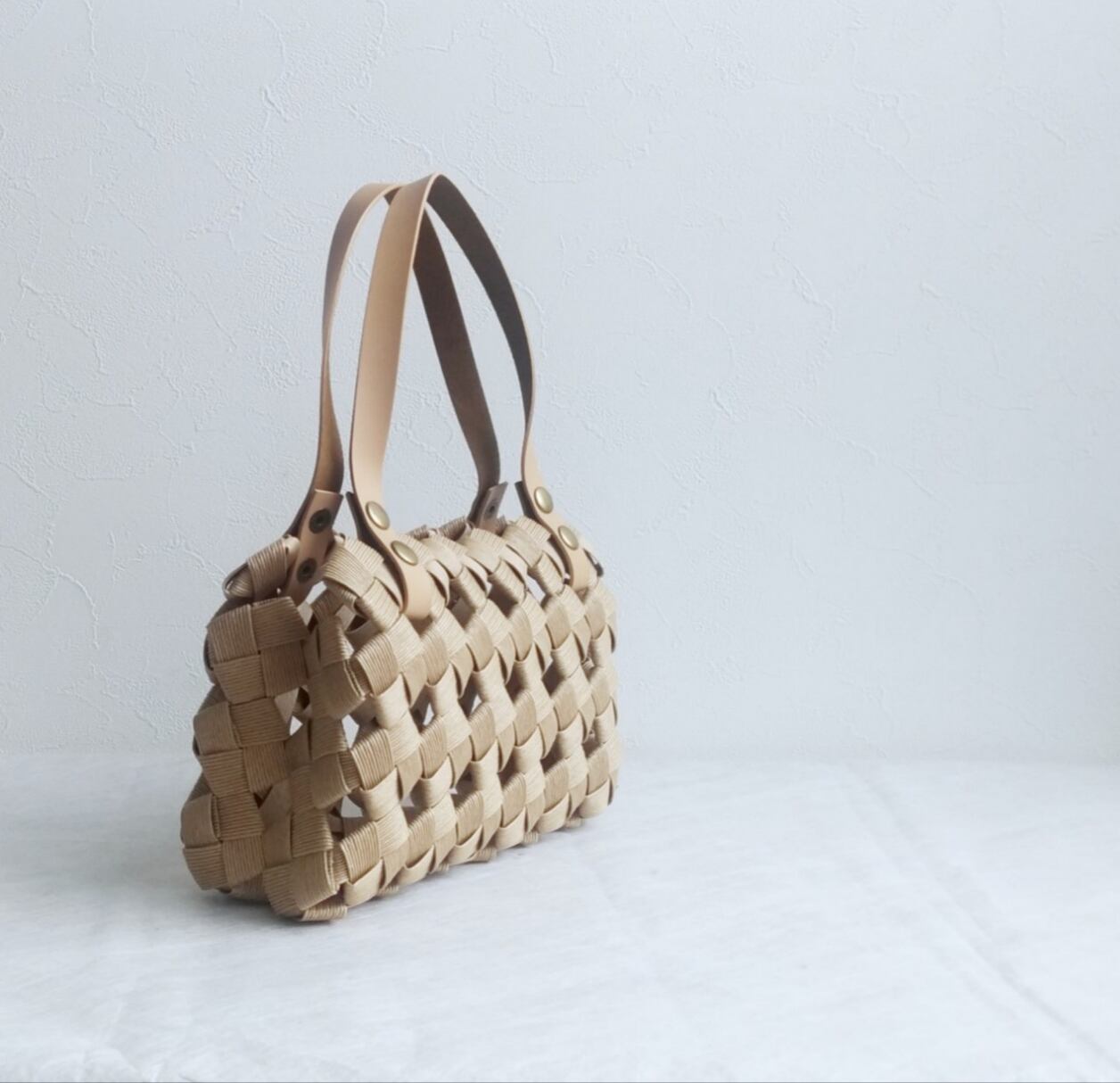 【全9色】夏 涼やか 大人カゴバッグ S きなり beige 本革ハンドル 浴衣にも素敵なかばん