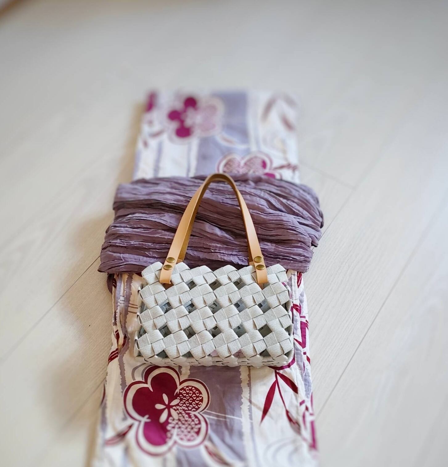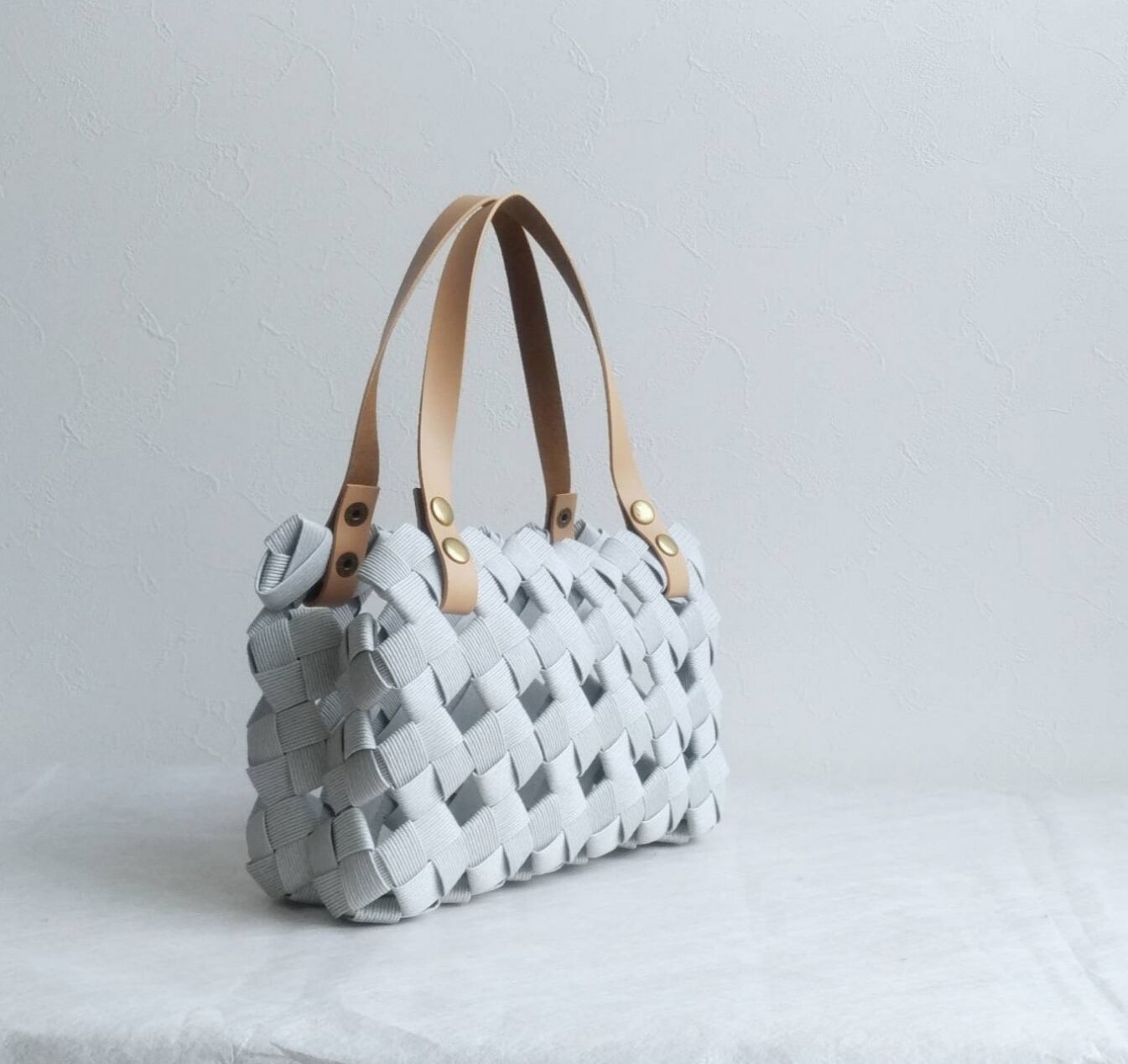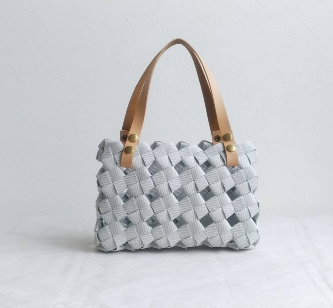 【全9色】夏 涼やか 大人カゴバッグ S パールグレー gray 本革ハンドル 浴衣にも素敵なかばん